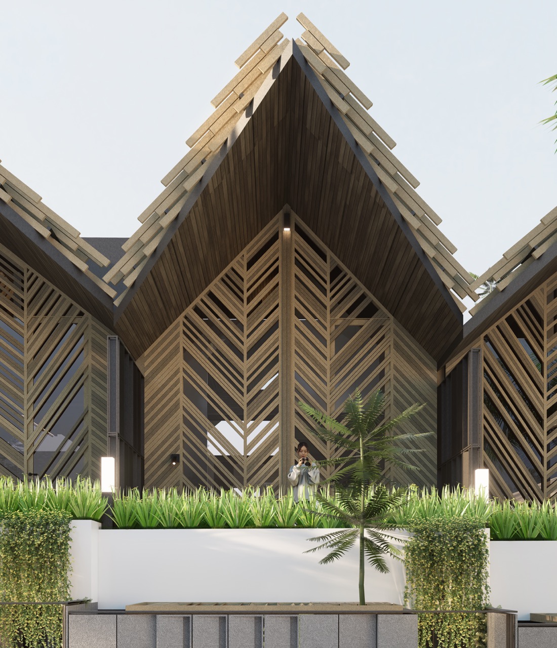 Façade option “ULIN”, is a facade option on JANA Kayana which has a roof shape centered symmetrical so that you will get a balance proportion of the front of your villa.