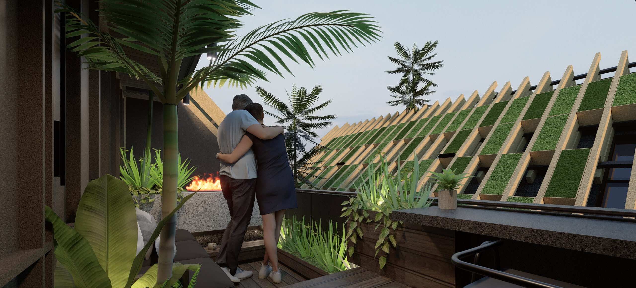 One of the villa’s most distinctive features is the “Green Sunrise Rooftop,” which includes a lounge area perfect for gatherings with friends and family. Overlooking lush rooftop gardens facing east, it offers breathtaking sunrise views that are sure to exceed expectations.